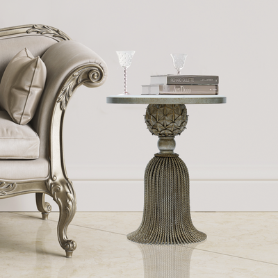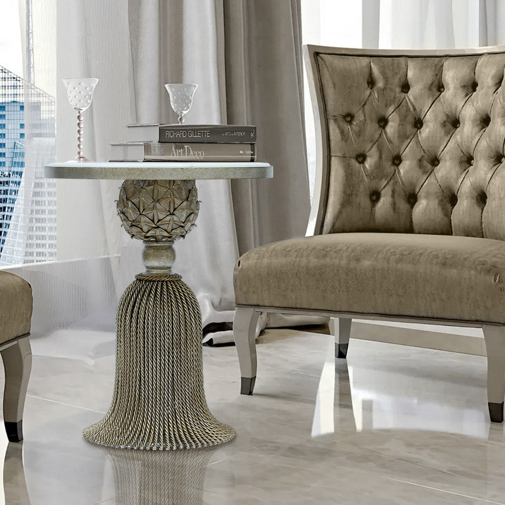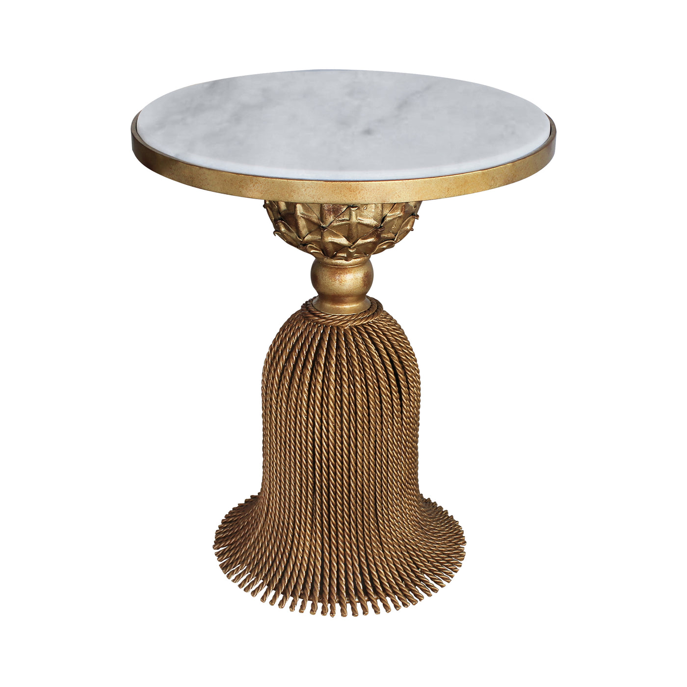 A Choufani best seller, the Isadora Side Table stands out with its unique tassel base and elegant gold finish—perfect for adding flair to any room.